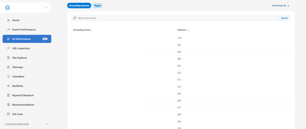 הדאשבורד החדש מספק תובנות נדירות שעוזרות לאנשי SEO למדוד את הנראות של האתר שלהם מעבר לדירוגים המסורתיים של מנועי החיפוש (Traditional Rankings). מדובר בחלון הצצה ראשון מסוגו לאופן שבו מודלי שפה (LLMs) מנתחים ושואבים מידע מהאתר שלכם כדי לענות לגולשים.