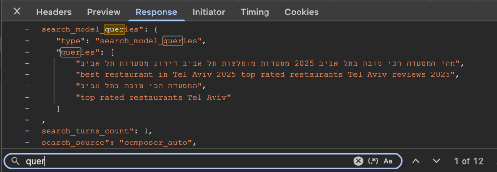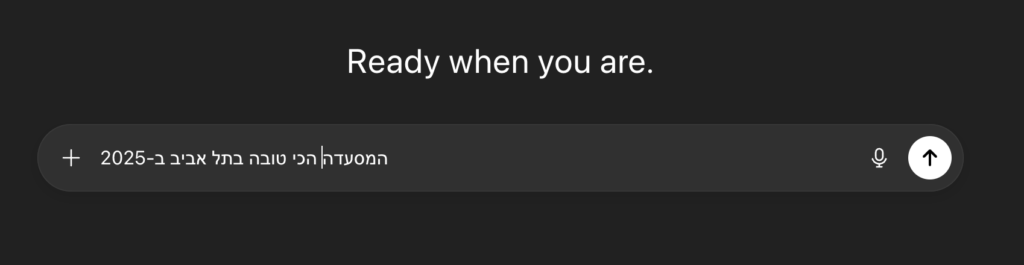 חפשו משהו שתרצו להופיע בו במודל השפה – במקרה הזה חיפשתי ״ המסעדה הכי טובה בתל אביב ב-2025״